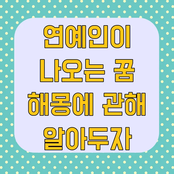 혹시 꿈에서 좋아하는 연예인 을 만난 적이 있으신가요? 잠에서 깨어난 후, 그 꿈이 주는 의미가 궁금했던 경험, 다들 한 번쯤은 있으실 텐데요. 연예인 이 등장하는 꿈은 때때로 우리에게 특별한 메시지를 전달 해 줍니다. 과연 꿈속의 연예인 은 어떤 긍정적인 신호를 보내는 걸까요? 혹은, 예상치 못한 부정적인 의미를 담고 있을 수도 있을까요? 이번 포스팅에서는 연예인과 관련된 다양한 꿈의 해몽과 함께, 꿈 해석 시 꼭 알아두어야 할 중요한 점 들을 자세히 알아보겠습니다.