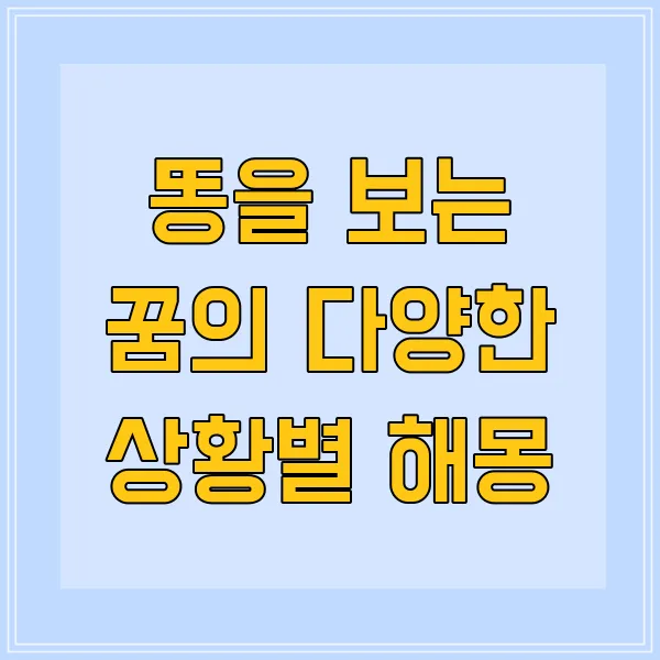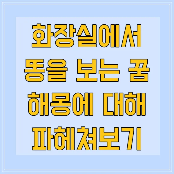 꿈은 때때로 우리의 무의식을 비추는 거울과 같아서, 생각지도 못한 메시지를 전달해 주곤 합니다. 특히 화장실에서 똥을 보는 꿈 은 많은 사람이 궁금해하는 꿈 중 하나인데요, 꿈속에서의 똥은 재물, 행운, 또는 문제 해결 등 다양한 상징적 의미 를 지니고 있기 때문입니다. 과연 꿈속 똥 은 우리에게 어떤 메시지를 전달하려는 걸까요? 이번 포스팅에서는 꿈속 똥의 상징적 의미 와 더불어, 꿈에 나타난 화장실의 모습, 그리고 다양한 상황별 해몽을 자세히 알아보며 꿈 해몽에 대한 궁금증을 풀어보려 합니다. 꿈의 세계를 탐험하며, 긍정적인 신호와 주의할 점까지 꼼꼼하게 짚어보겠습니다.