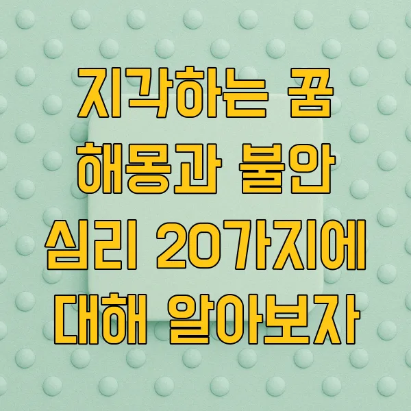 저 역시 불안한 시기를 겪으면서 꿈 때문에 밤잠을 설친 적이 많았습니다. 하지만 규칙적인 생활 습관, 긍정적인 생각, 그리고 전문가의 도움을 통해 불안을 극복하고, 편안한 잠을 되찾을 수 있었습니다. 여러분도 불안에 압도되지 마시고, 자신만의 방법을 찾아 건강한 마음과 편안한 잠을 누리시길 바랍니다.