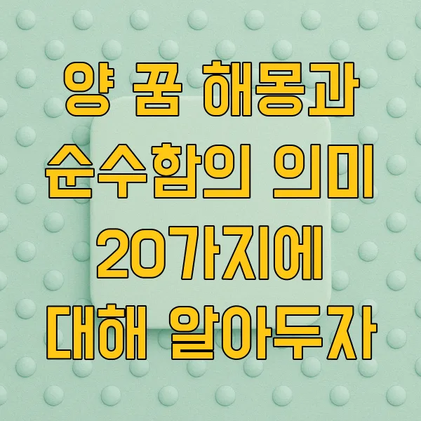 꿈 해몽, 참 신기하고 오묘한 영역이죠? 저도 가끔 꿈 내용을 곱씹으며 하루를 시작하곤 합니다. 특히 양 꿈은 왠지 모르게 평화롭고 순수한 기운이 느껴져서 더욱 궁금해지는데요. 꿈속 상황에 따라 양이 전달하는 메시지가 다를 수 있다는 점, 알고 계셨나요? 지금부터 다양한 상황별 양 꿈 풀이를 통해 꿈이 우리에게 무엇을 이야기하려 하는지 자세히 알아보도록 하겠습니다.