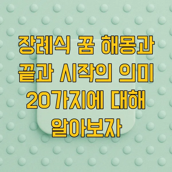 하지만 걱정 마세요! 장례식 꿈 은 단순히 불운을 의미하는 것이 아니라, 끝과 시작 이라는 중요한 메시지를 담고 있을 수 있습니다. 오늘은 장례식 꿈 해몽 과 함께 꿈이 가진 다양한 의미 20가지 에 대해 자세히 알아보겠습니다. 꿈이 여러분에게 전하려는 이야기에 귀 기울여 보세요.