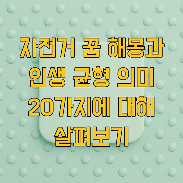 자전거 꿈 해몽과 인생 균형의 의미 를 함께 살펴보았습니다. 꿈은 무의식의 반영 이자, 현재 삶의 방향을 제시하는 나침반과 같습니다. 자전거를 타는 꿈처럼, 우리 인생도 균형을 잡고 페달을 밟아야 앞으로 나아갈 수 있다는 것을 깨달았습니다.