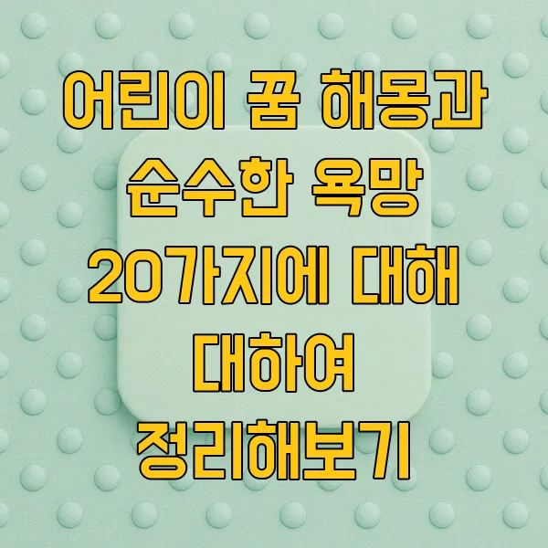 이번 글에서는 ' 어린이 꿈 해몽 '의 기본 원리부터 아이들의 꿈에 나타나는 일반적인 특징, 그리고 꿈을 통해 아이의 심리를 이해하는 방법까지 20가지 순수한 욕망을 담아 자세히 알아보겠습니다. 저의 경험을 바탕으로 얻은 인사이트와 함께, 여러분의 자녀를 더 깊이 이해하는 데 도움이 되기를 바랍니다.